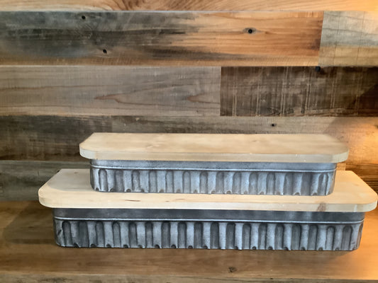16” ROUND WOOD AND ETCHED BLACK METAL TRAY